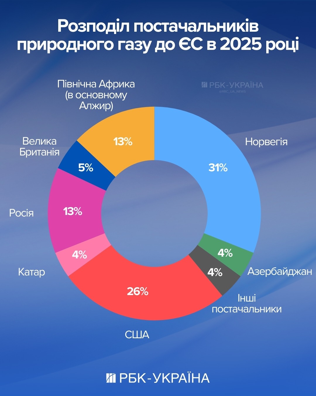 Незважаючи на те, що з 2022 року частка імпорту російського газу до ЄС скоротилася з 40% до 13%, обсяги, що залишилися, у разі різкого припинення поставок позначаться на цінах.
