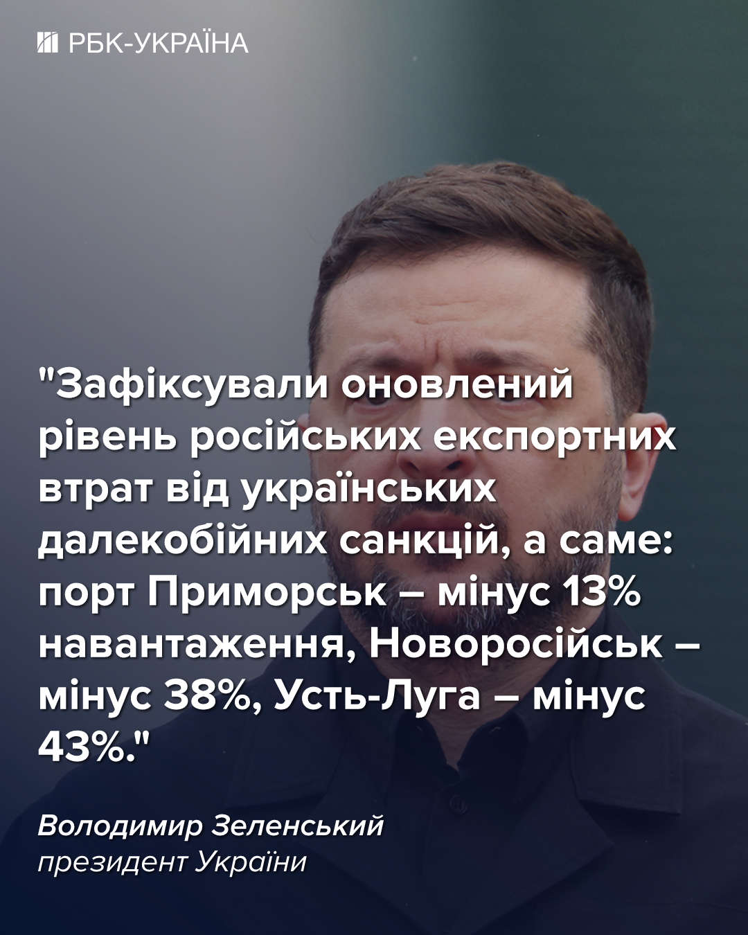 Українські санкції та удари скорочують нафтовий експорт Росії – президент України Володимир Зеленський назвав конкретні цифри по трьох ключових портах.