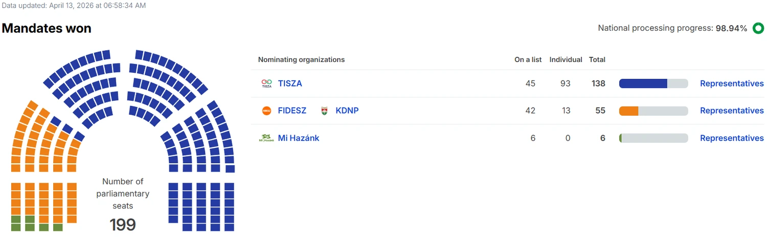 Péter Magyar's party wins a constitutional majority in the Hungarian elections – 99% of votes counted