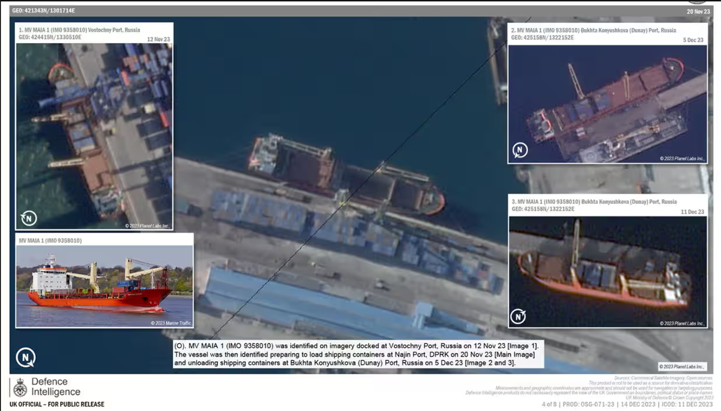 Зазначається, що неоприлюднена доповідь британської розвідки містить знімки, зроблені в період з вересня по грудень, на яких три російські кораблі – "Майя", "Ангара" і "Марія" – завантажують контейнери у відродженому північнокорейському порту Наджін перед тим, як пройти транзитом до російських портів на Далекому Сході.
