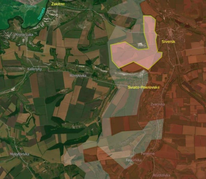 Сіверськ. російські війська атакували Закітне, що за 8 км на захід від Сіверська. росіяни, ймовірно, переправилися через річку Сіверський Донець, щоб увійти в село.