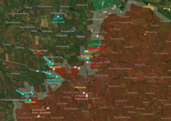 Говорячи про Покровськ, не можна оминути наслідки бездумного розшматування підрозділів ЗСУ, яке влаштовує головком Сирський. Він настільки "добре" грає в цю гру, що підрозділи його загнаного 425-го штурмового полку "Скала" нині розгорнуті на Куп’янському, Покровському, Удаченському та Терновському напрямках.